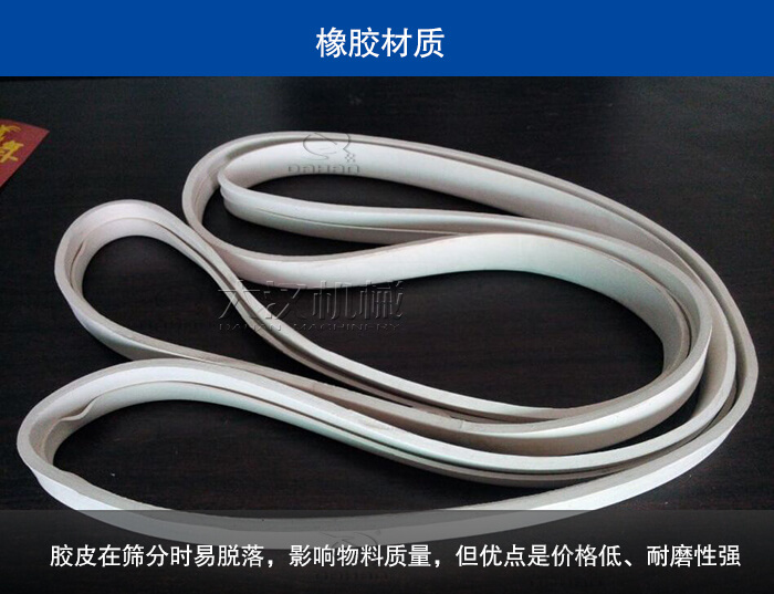 橡膠材質(zhì)的密封件中使用廣泛,,但在食品、化工類行業(yè)使用較少,因為橡膠本身對于物料會有一定的污染成分,膠皮在篩分時易脫落,會嚴重影響物料質(zhì)量,但其價格低、耐磨性強,用戶在購買振動篩應(yīng)根據(jù)物料的不同要求安裝合適的密封件。